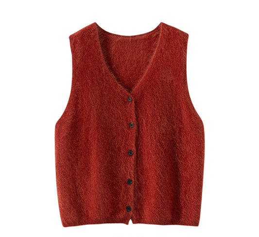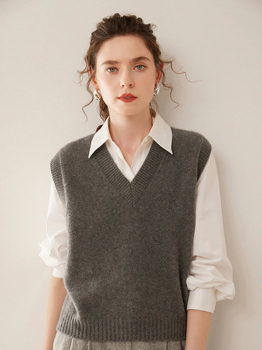 %100 Keçi Kaşmir Kazak Düz Renk Örgü Kolsuz Lüks Süveter