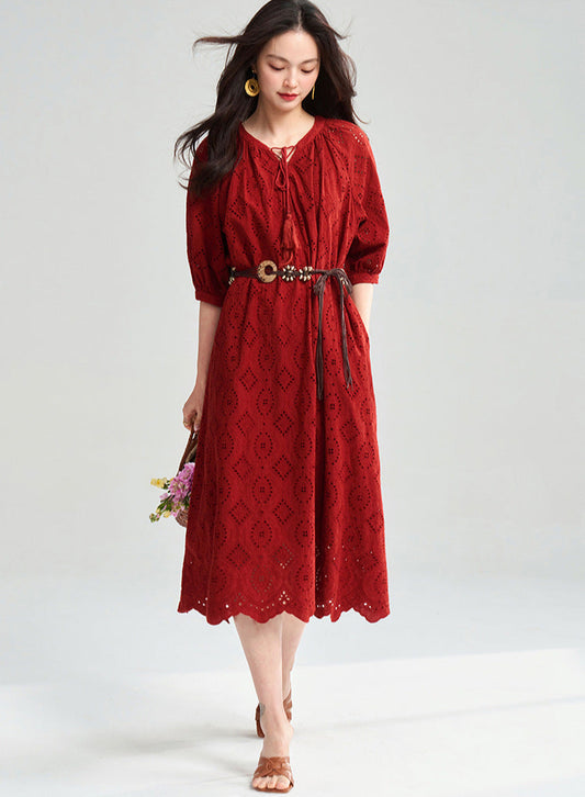 %100 Pamuk Bohem Tarzı Nakışlı Elbise