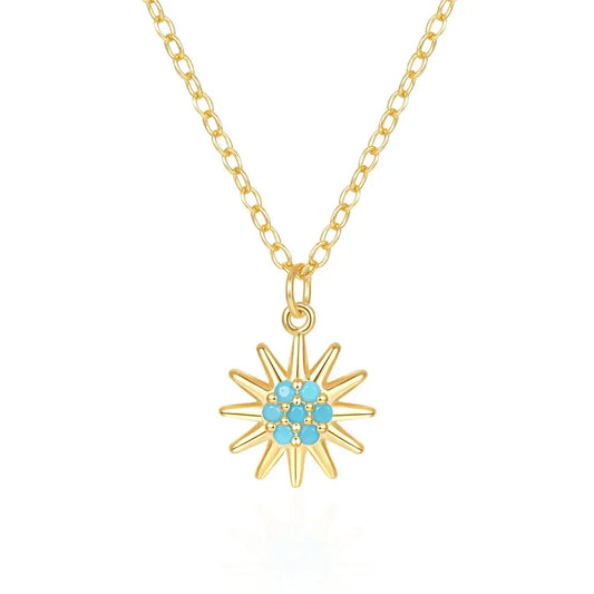 925 Ayar Gümüş 18 Ayar Altın Renkli Doğal Taş Kolye