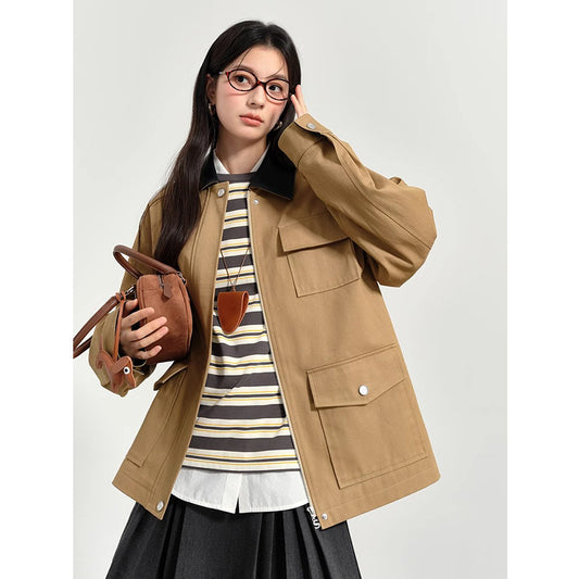 Kore Tarzı Rahat ve Bol Kesim Lapel Rüzgarlık Ceket