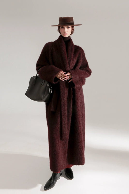 Lüks Tibet Yak Yünü Triko Kaban – Kuşaklı Rahat Fit