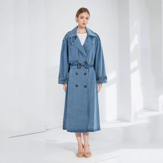 30% İndirimMavi Denim Uzun Yıkamalı Kot Ceket