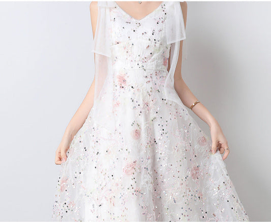 19% İndirimKristal Pul Nakışlı V Yaka Uzun Midi Elbise