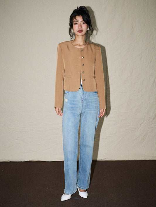 22% İndirimKlasik Yuvarlak Yaka Küçük Kısa Ceket