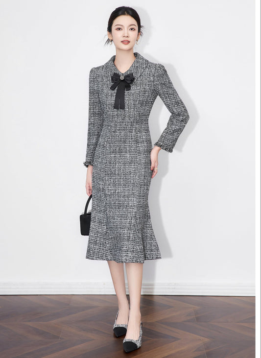 Zarif Chanel Tarzı Kırçıllı Kumaş Balık Model Elbise