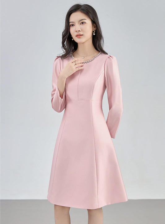 Zarif Boncuk İşlemeli Şık Midi Elbise