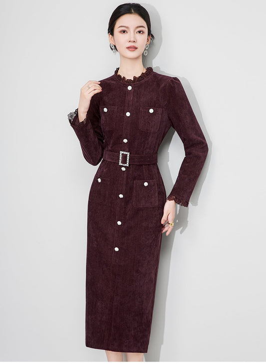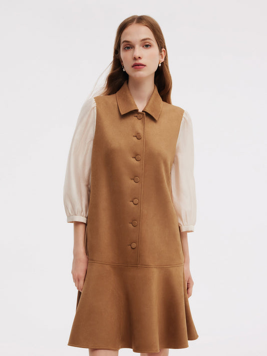 Kahve Suede Dantel Splicing Elbise