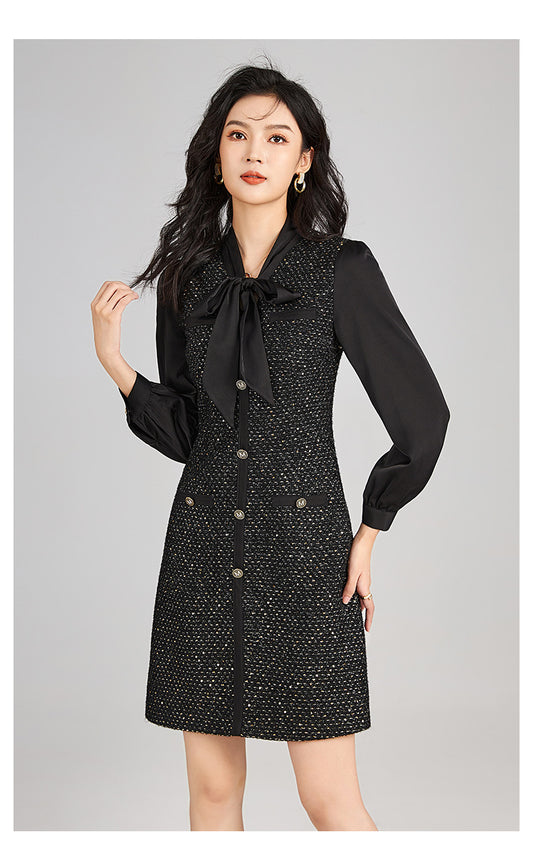 19% İndirimKontrast Yakalı Fiyonk Detaylı Elbise