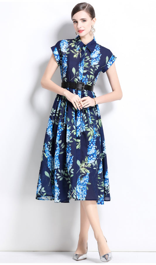 Polo Yaka Baskılı Şık Midi Elbise