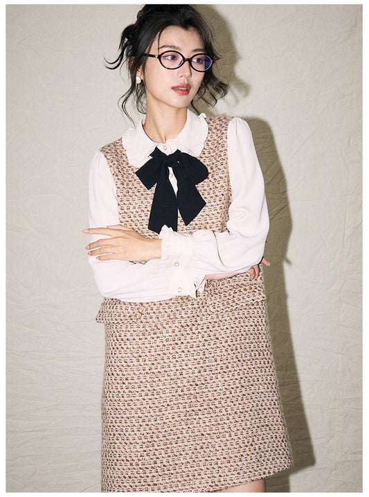 Zamansız Ekoseli Chanel Esintili Bel Vurgulu Üst + Şık Mini Etek Takımı