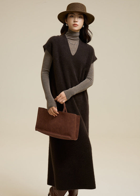 V Yaka Yün Karışımlı Oversize Yelek Elbise