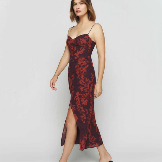 23% İndirimKırmızı Askılı Yırtmaçlı Bağlamalı Elbise