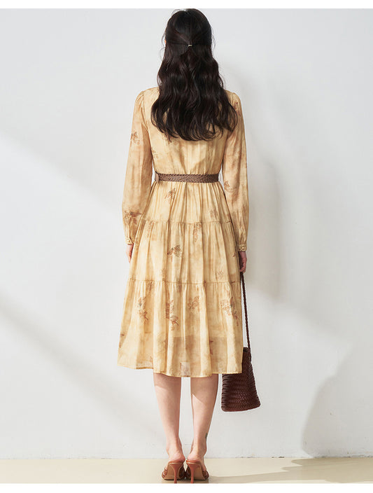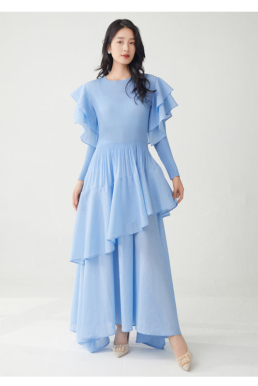 21% İndirimBahar Hafifliği Fırfırlı Uzun Kollu Midi Elbise
