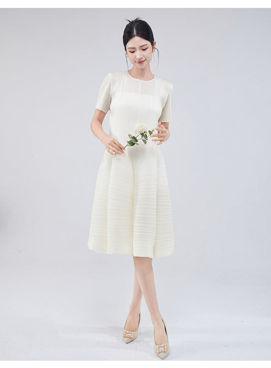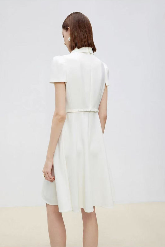 Zarif Ekru Yaz Şıklığı Polo Yaka Kısa Kollu Midi Elbise