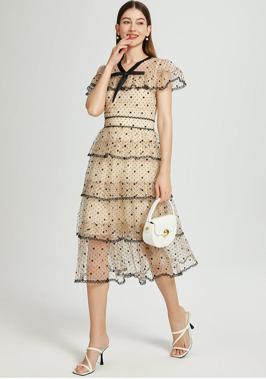 21% İndirimRetro Puantiye Işıltısı Kat Etek Elbise
