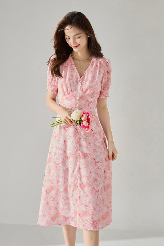 Bulut Hafifliği Çiçek Formlu Midi Elbise