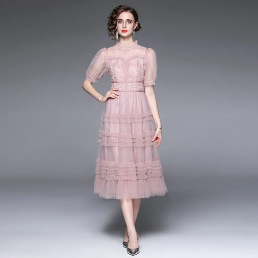 27% İndirimDantel Detaylı Fırfırlı Midi Elbise
