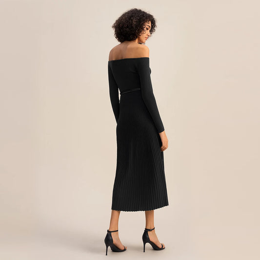 %100 Kaşmir Örgü Zarif Balıkçı Yaka Pilili Yumuşak Elbise