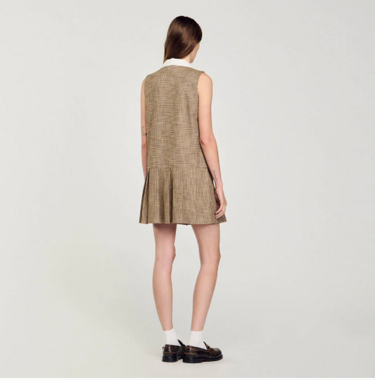 18% İndirimKısa Kolsuz Mikro Kazayağı Desenli Elbise