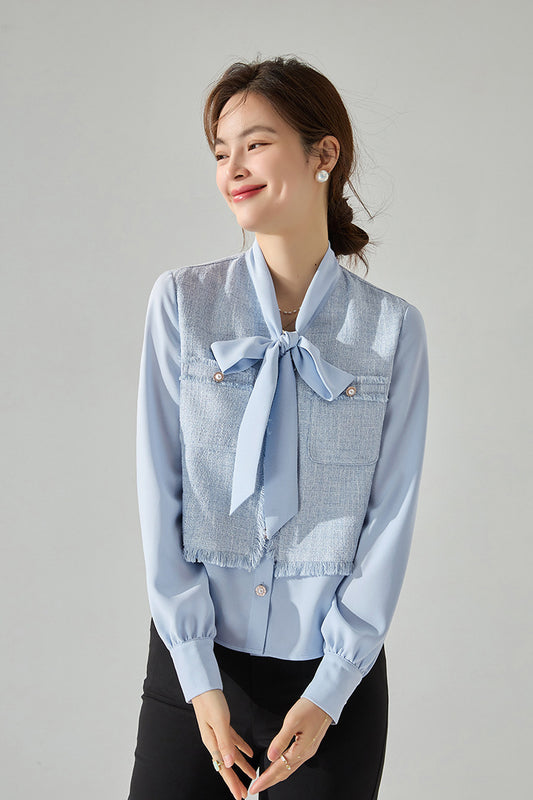 25% İndirimİkili Görünümlü Fular Yaka Gömlek