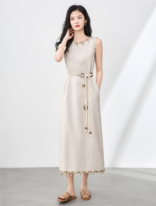 23% İndirimBohem Toka Kemer Detaylı Keten Tencel Elbise
