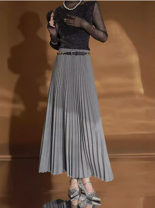Old Money Stili Üçlü Takım – Gömlek, Etek ve Şal Kombini