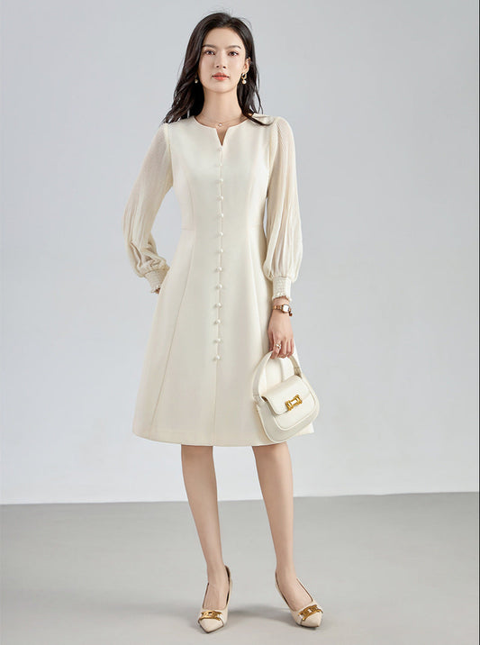 Krem Renk A Kesim Elbise – Şık ve Zarif Tasarım
