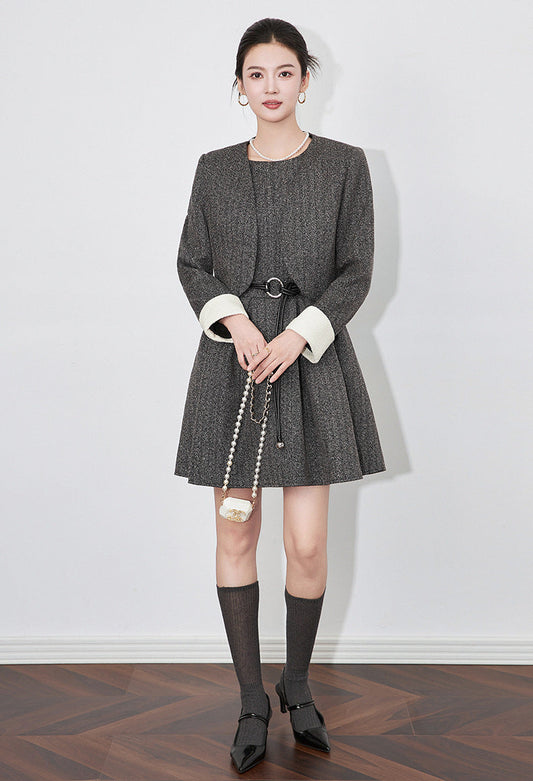 Fransız Stil İkili Ceket ve Elbise Takım