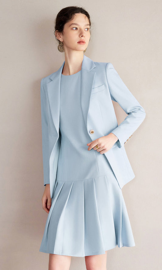 Zarif Mavi İkili Takım – Ceket ve Elbise Kombini