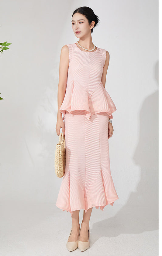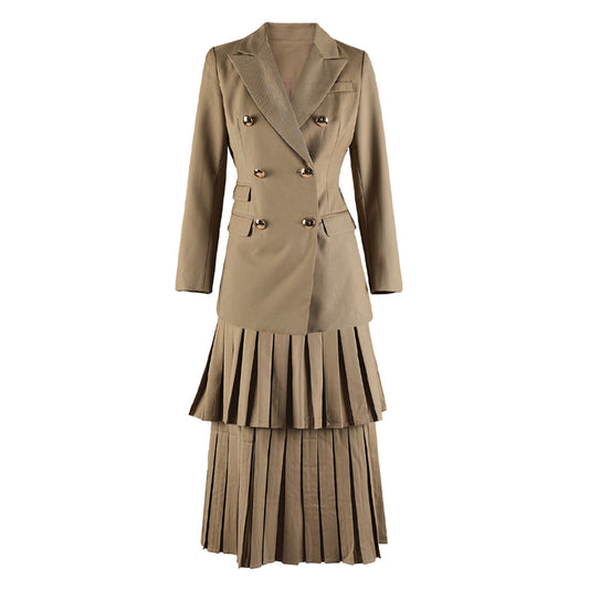 Fransız Stil Yüksek Kaliteli Çift Düğmeli Takım (Ceket + Pileli Etek)