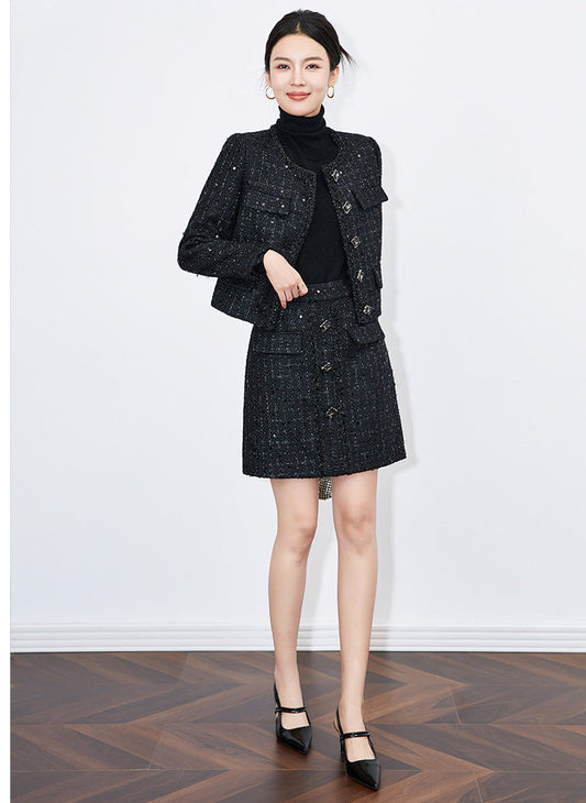 Işıltılı Yün Karışımlı İki Parça Takım – Ceket & Etek