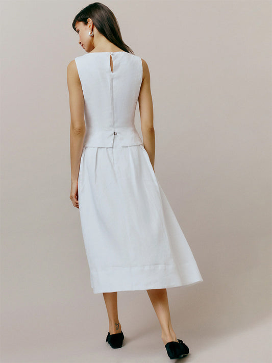 Doğal Keten Takım – Beyaz Kolsuz Yazlık İkili Takım
