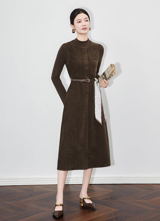 Retro Yün Karışımlı Yelek Midi Elbise + Triko Kazak İkili Takım