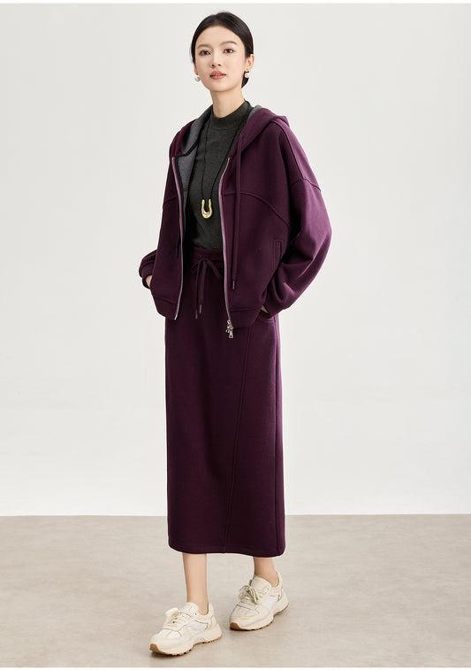 Yumuşak Yün Karışımlı Kapüşonlu & Lastik Bel Etek Takımı