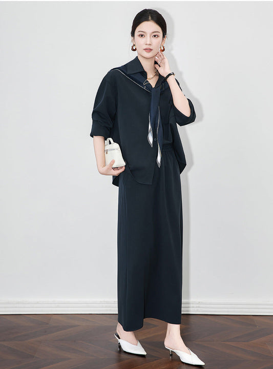 Old Money Stili Üçlü Takım – Gömlek, Etek ve Şal Kombini