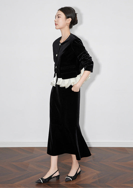 Şık Fransız Tarzı Kadife Ceket & Balık Etek İki Parça Takım