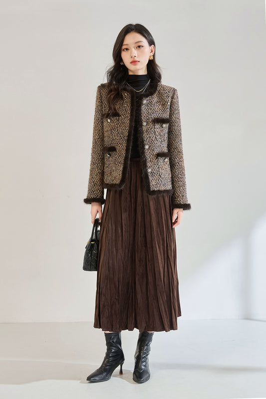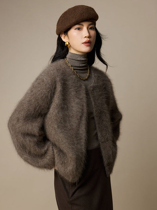 Lüks Yün Karışımlı Yuvarlak Yaka Kısa Ceket