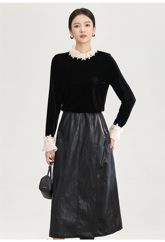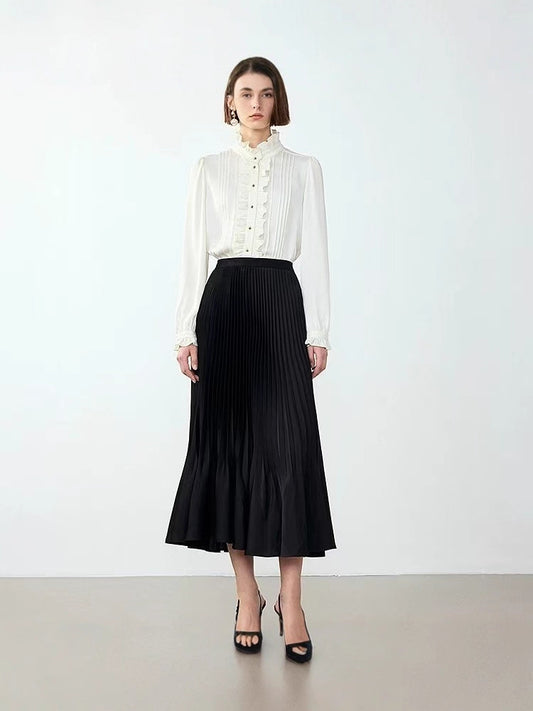 23% İndirimKadife Pileli A-Kesim Uzun Etek