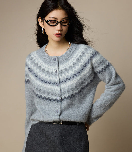 Saf Yün Desenli Düğmeli Hırka