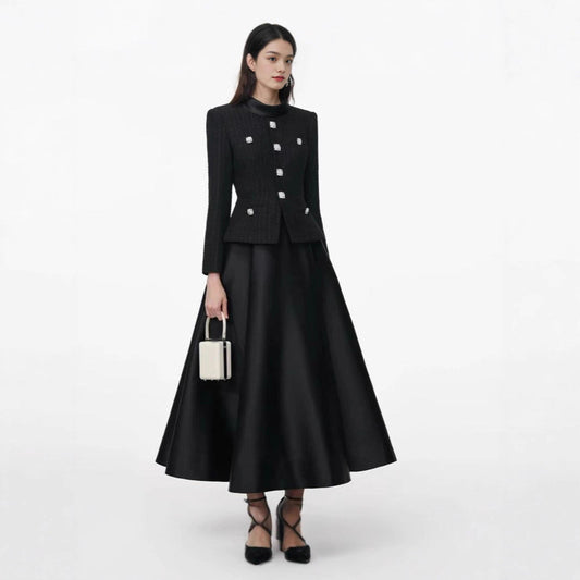 İnce Parıltılı Kumaş Ceket & Etek İki Parça Takım
