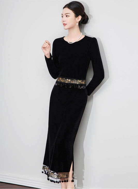 20% İndirimFransız Retro Patchwork Siyah Uzun Elbise