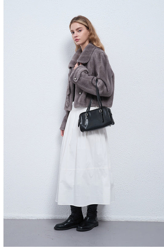 Tüylü Dokulu Kısa Alpaka Yün Ceket