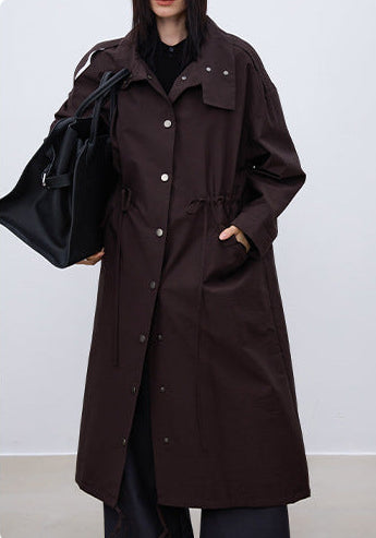 Kahverengi Oversize Brit Tarzı Uzun Trençkot