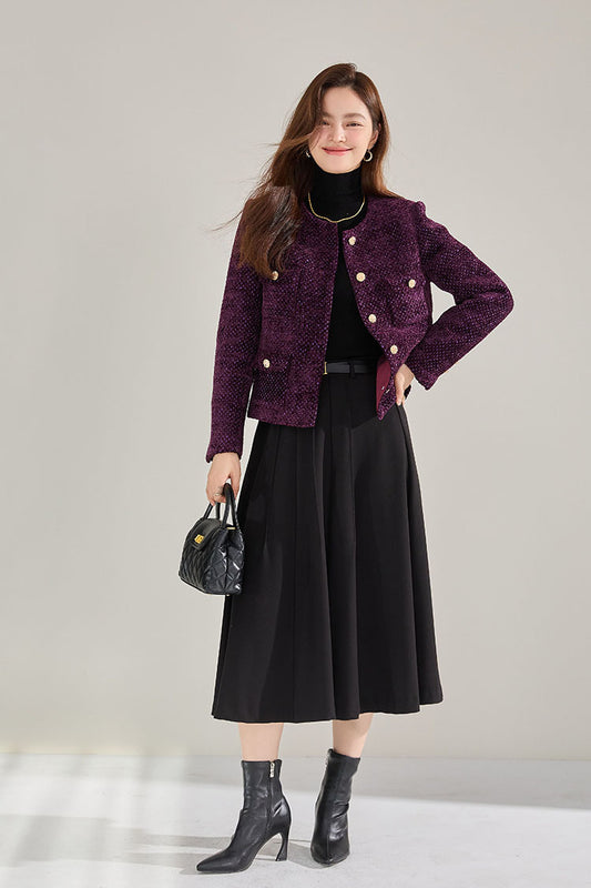 Mor Tweed Fransız Stil Kısa Ceket