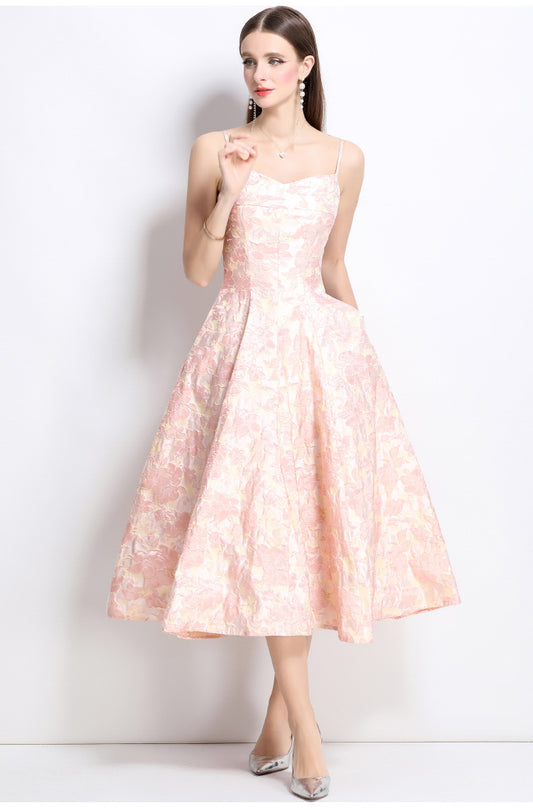 21% İndirimJakarlı Askılı Prenses Elbise