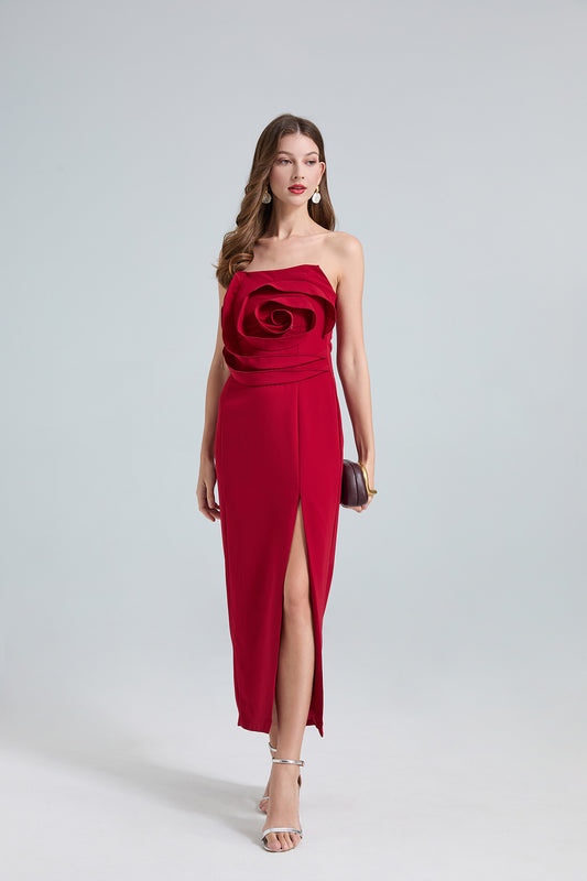 28% İndirimStraplez 3D Çiçek Nakışlı İnce Bel Uzun Elbise