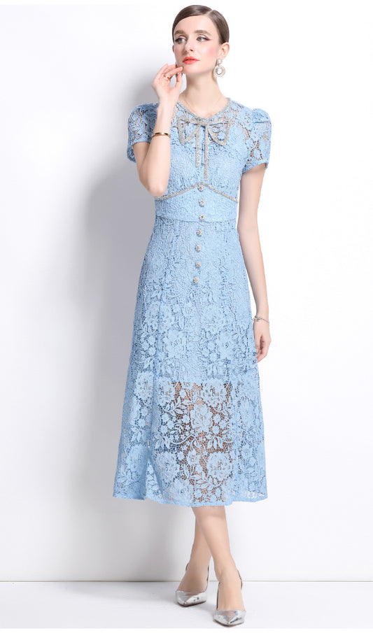 36% İndirimDantel Fiyonklu Fransız Stil Elbise