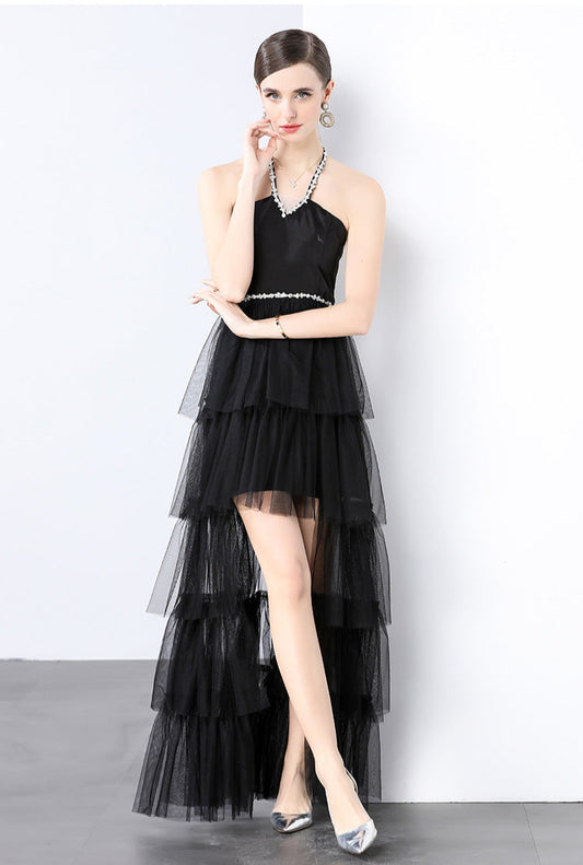 20% İndirimTül Detaylı Siyah İnci Yaka Elbise