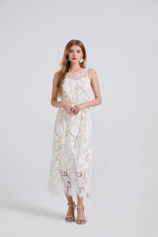 24% İndirimTanrıça Stili Beyaz Dantel Uzun Elbise