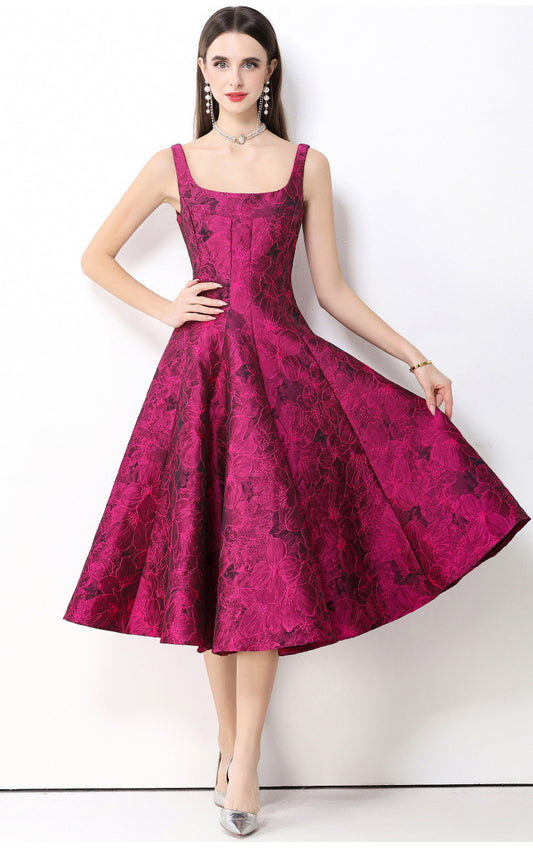 Rosé Lumière Askılı Jakarlı Uzun Elbise